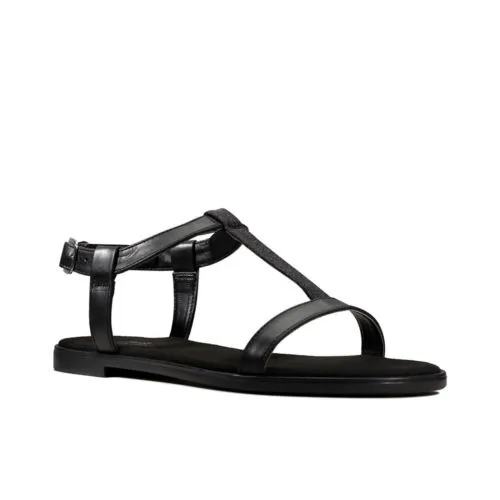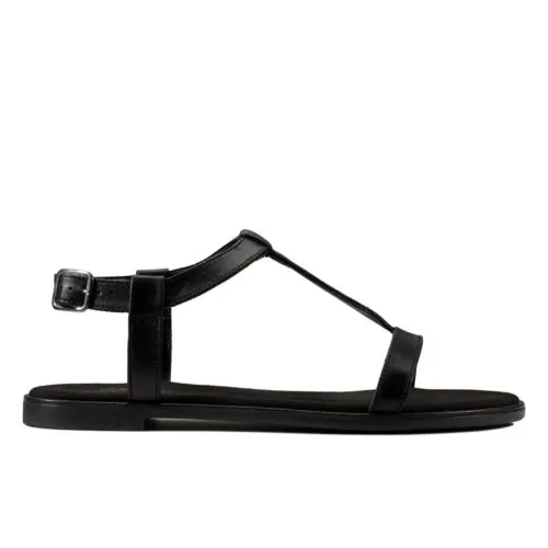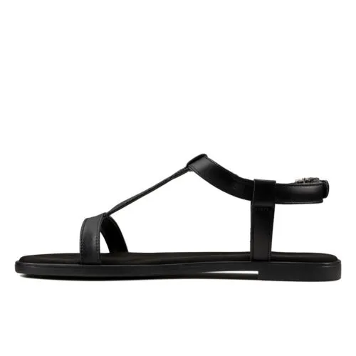 Perfect for taking on holiday, these flat T-bar sandals offer a minimalist look thanks to the strappy upper and simple buckle fastening. Featuring an ankle strap for a secure fit, a grippy rubber sole and soft textile footbed