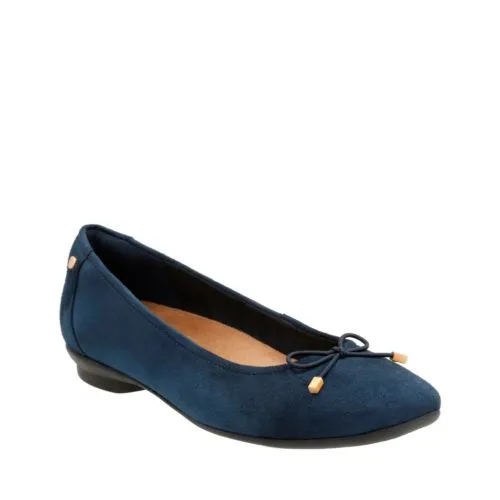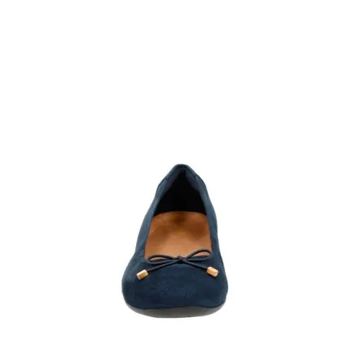 Effortlessly stylish, this woman’s slip-on pump features a squared off toe in soft navy suede and has sweet bow detailing on the toe. Gold accents finish off the feminine style, while a moulded footbed with soft breathable linings and our unique Cushion Plus technology delivers unbeatable underfoot cushioning and the rubber outsole flexes with the foot. A timeless classic.