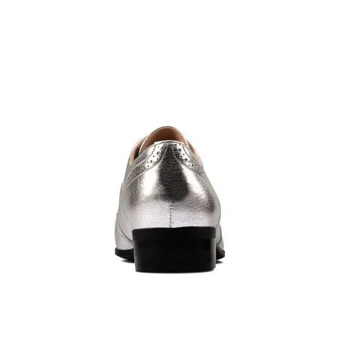 Our bestselling women’s brogues given an update in silver metallic leather. Authentic lacing and punched broguing detail add to the premium look which is finished with a veneered stacked effect heel and with our unique Clarks Cushion Plus™ technology, this style delivers the best underfoot cushioning.
