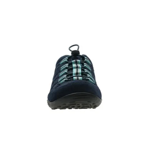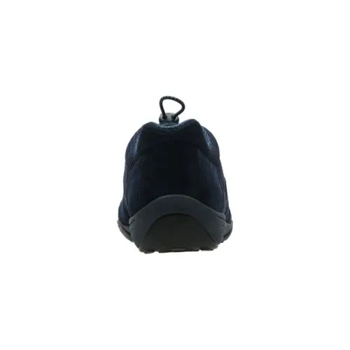 Hemistich Rose, a walking shoe-inspired women’s style in a navy blue suede and textile mix. The sturdy, sporty upper is teamed with a chunky, durable sole while elastic hiker laces finish the look. Textile linings feel comfortable and breathable. Heel height: 3cm.