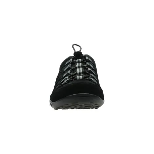 Hemistich Rose, a walking shoe-inspired women’s style in a black suede and textile mix. The sturdy, sporty upper is teamed with a chunky, durable sole while elastic hiker laces finish the look. Textile linings feel comfortable and breathable. Heel height: 3cm.