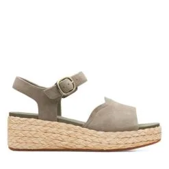 Kimmei Way is a contemporary two-part sandal that feels fresh and ultra-wearable. The upper in premium olive suede sits on a wedge heel with just the right amount of elevation.