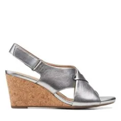 This summery wedge will soon become a go-to in your wardrobe. The upper is made from full grain leather and features a riptape closure for adjustability. The cork wedge bottom is incredibly light weight, while a rubber outsole to boost traction and stability. Layers of Cushion Soft padding with an impact-reducing OrthoLite footbed reduce the shock of each step it takes. Adds interest to everything from denim shorts to sundresses.