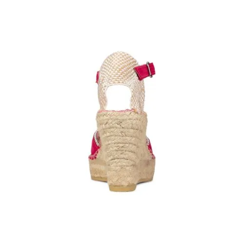 Wedge sandals perfect for summer occasions. The upper has been crafted from soft suede and features subtle stud detailing, whilst a buckle fastening and extra ankle support are designed to keep feet firmly in place. The textured 9.5cm heel is made wearable thanks to a soft sock and grippy rubber sole. A great way to add some colour and elevation to outfits this season. <