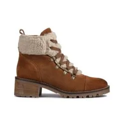 A modern attitude creates this women’s boot, designed in dark tan suede with hiker-inspired eyelet lacing and a cosy foldover cuff. An inside zip and pull-on loop help with easy foot entry.