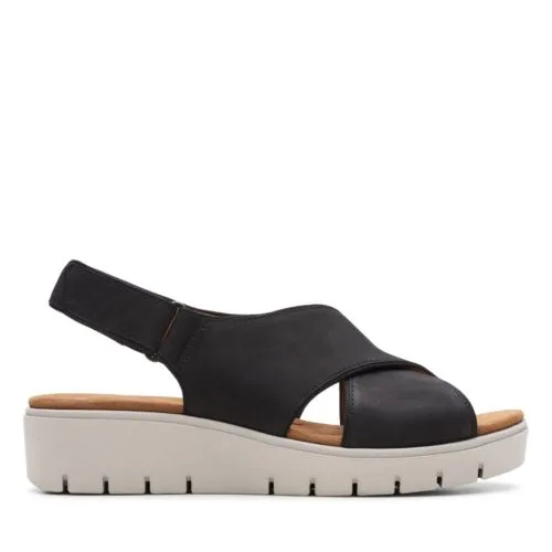 Un Karely Sun, women’s sandals, black nubuck – Tick off the athleisure trend this summer with these sporty women’s sandals from our Unstructured collection. A simple black nubuck upper with crossover detailing and a riptape fastening around the ankle ensures a secure fit, while the lightweight sole unit is made from EVA for a flexible feel. Gait Mapping technology helps to reduce foot fatigue, while a luxurious leather lining and suede sock guarantees comfort with every step.