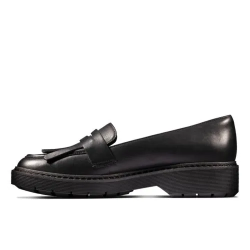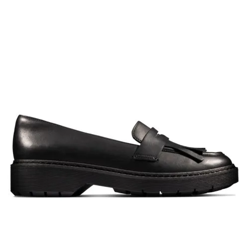 Taking a classic trend and giving it a contemporary update, this chunky loafer features a premium black leather upper with fringed detail, teamed with a cleated rubber outsole. Crafted and super-comfortable.